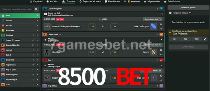 O 8500 Bet oferece uma grande seleção de opções de apostas em e-sports com probabilidades competitivas